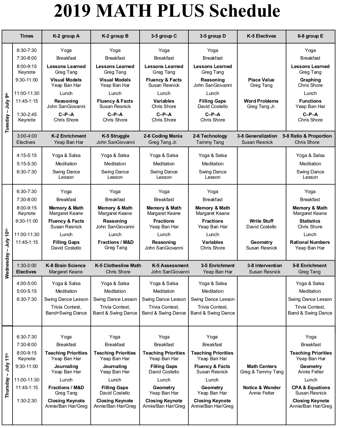 For the 2019 Math Plus Events we have decided to forgo the group discounts and offer Early Bird Registration instead. Register by May 31st for a $60 per person discount.